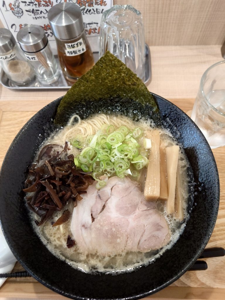 ホーム » ムトぴょんから、2回目のご紹介【らぁ麺/満】さんであります~!!(地下鉄 東山線 藤が丘駅の近く)クリア豚骨がめっちゃ!!美味しいです。豚骨を丁寧に下処理とアク抜きして低温でゆっくりじっくり炊いて豚骨の旨味とコラーゲンをたっぷり抽出したスープであります。スープまで全部、飲み干せる美味しさです~!!でら!!エエがね~!!刻みワサビの追い飯セット!!も食べてみてください~!!絶品ですよ~!! また、近々、ムトぴょんも食べに行ってきますね~(笑)
